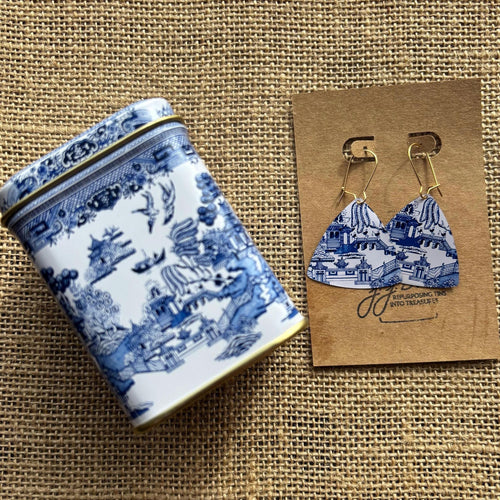 Very pretty earrings! I love to see vintage tins that might otherwise end up in a landfill recycled into something beautiful. I especially like the design of this particular pair; the fan shape & hoop style is really pretty & feminine. They arrived quickly and were packaged carefully.